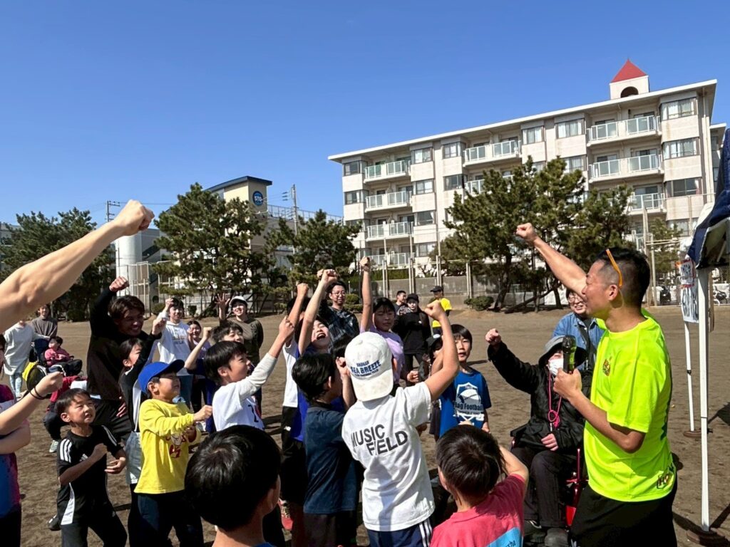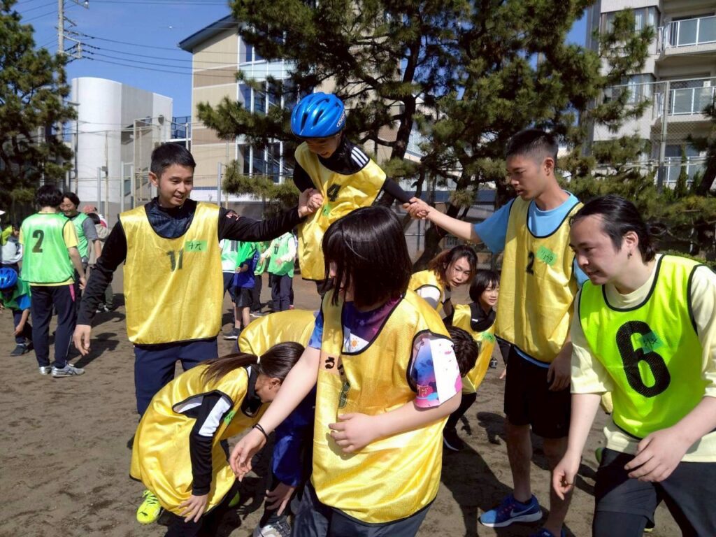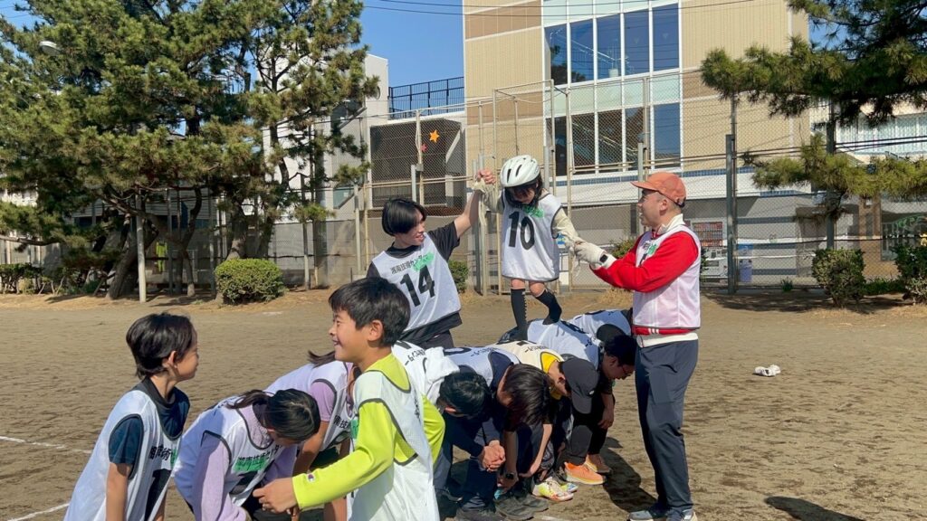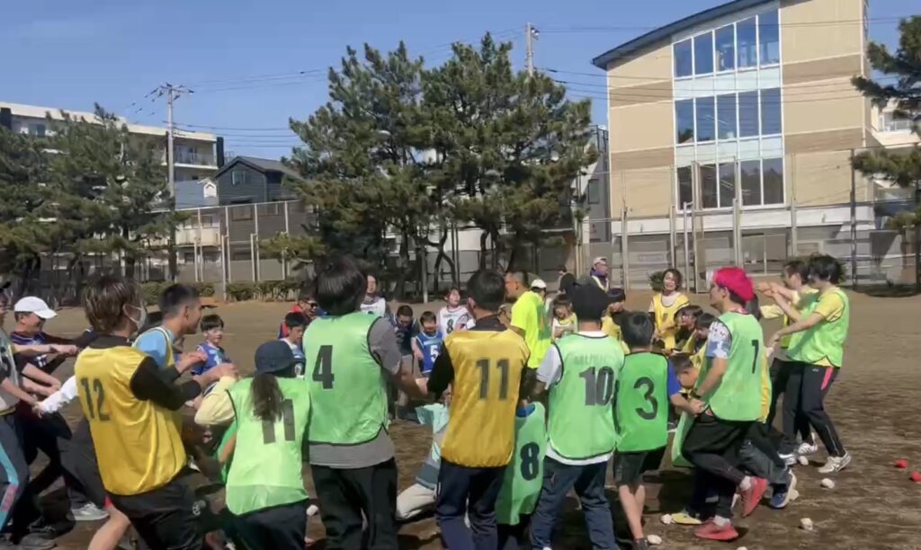 最初は、恥ずかしがって同じチームでも会話ができなかった子どもたちでも、終わる頃には、チーム関係なく気づいたら仲良くなってる!!