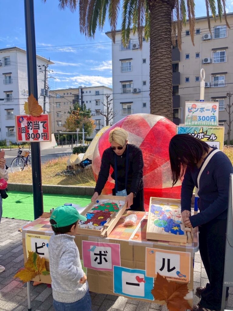 昨年度も出店した子どもに大人気や的当て🔫や、新たに学生たちが手作りしたピンボール🏐、そして”非日常感があってワクワクする”ポップコーン🍿を出店!!!さらにこの会場に合う装飾や看板にもこだわり、お客さんを盛り上げられたのではないか!!と思います!!