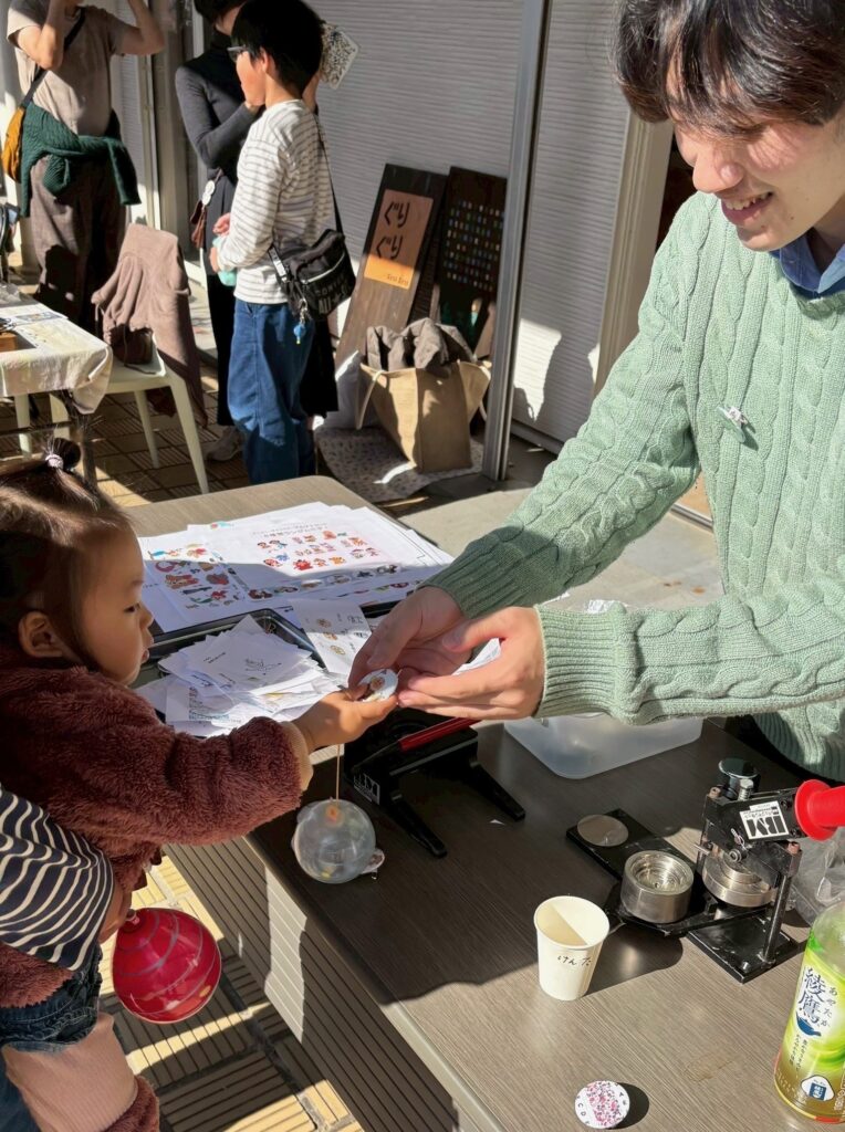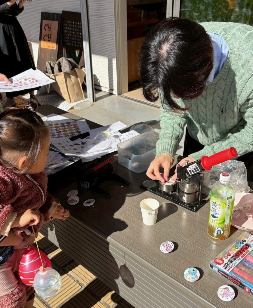 また、主催者である浦島さんから温かいお声がけをいただき、缶バッチ作りのお手伝いもさせていただきました。
